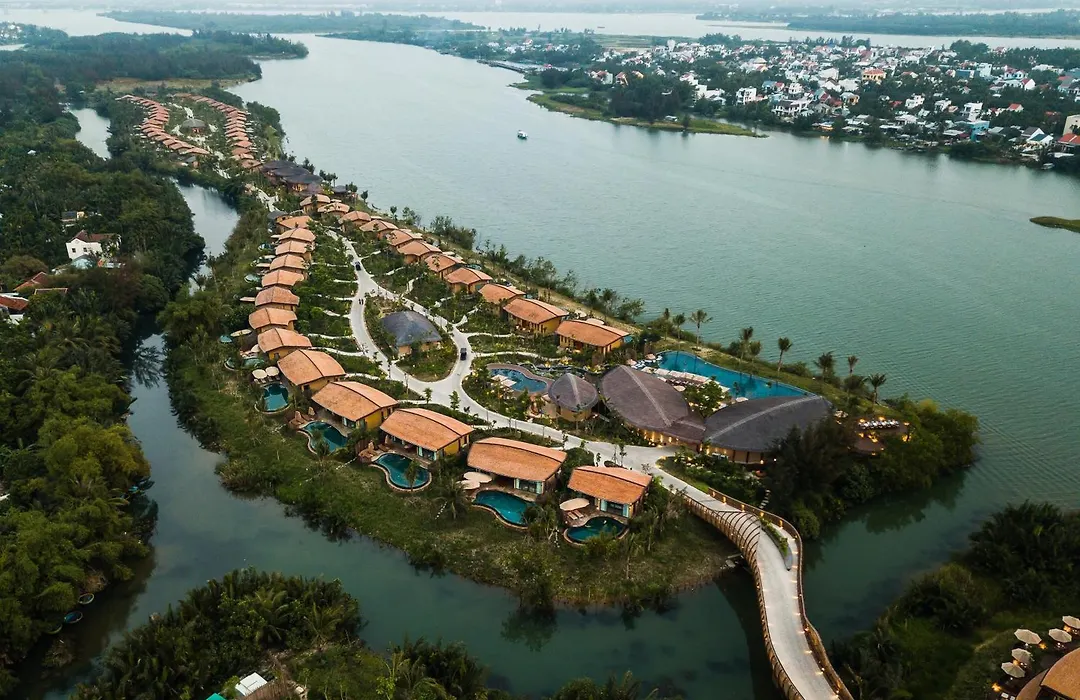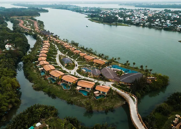 Located within a 5-km distance of the lined An Bang Beach, the 5-star Namia River Retreat - Wellness Inclusive Resort Hoi An boasts a Turkish steam room, a hot spring public bath, and a sauna. Boasting an outdoor swimming pool, this Hoi An hotel is nestled approximately a 10-minute drive from natural attractions like the Cua Dai Beach.